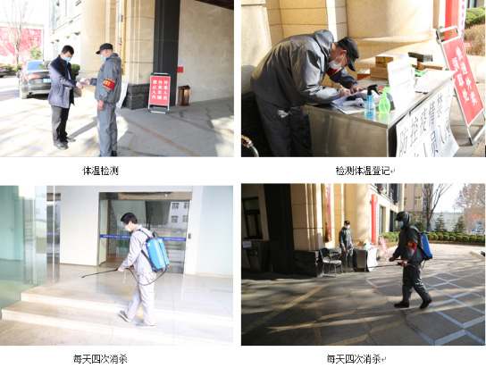 指挥小组对各项防护、消杀工作提出了细致的要求。根据政府防疫部门要求设置了多处隔离室,对所有进出人员进行体温检查、详细登记外。在集团总部办公楼,还对楼道、电梯、洗手间、门把手等重点区域和公共区域每天进行四次消杀,确保消杀到位。对快递、信函、包裹等进行消杀,实行无接触接收快递,电梯间设置了棉签和消毒酒精,实现了无接触通行。