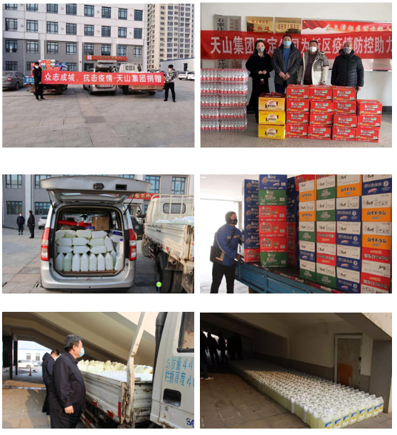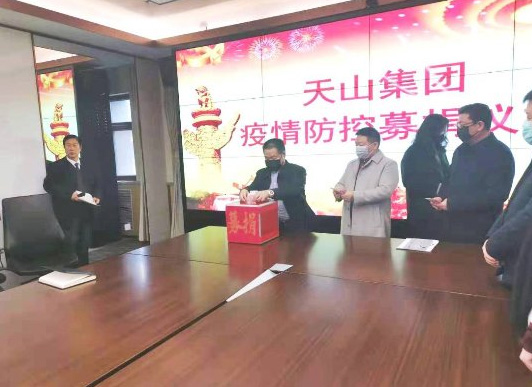 为坚决打赢新型冠状病毒疫情防控战,天山集团第一时间向石家庄市红十字会和石家庄高新区管委会捐赠六辆救护车及现金人民币价值300万元,员工自愿现金捐款28.4942万元,天山集团捐款总额已达328.4942万元及防疫物资。